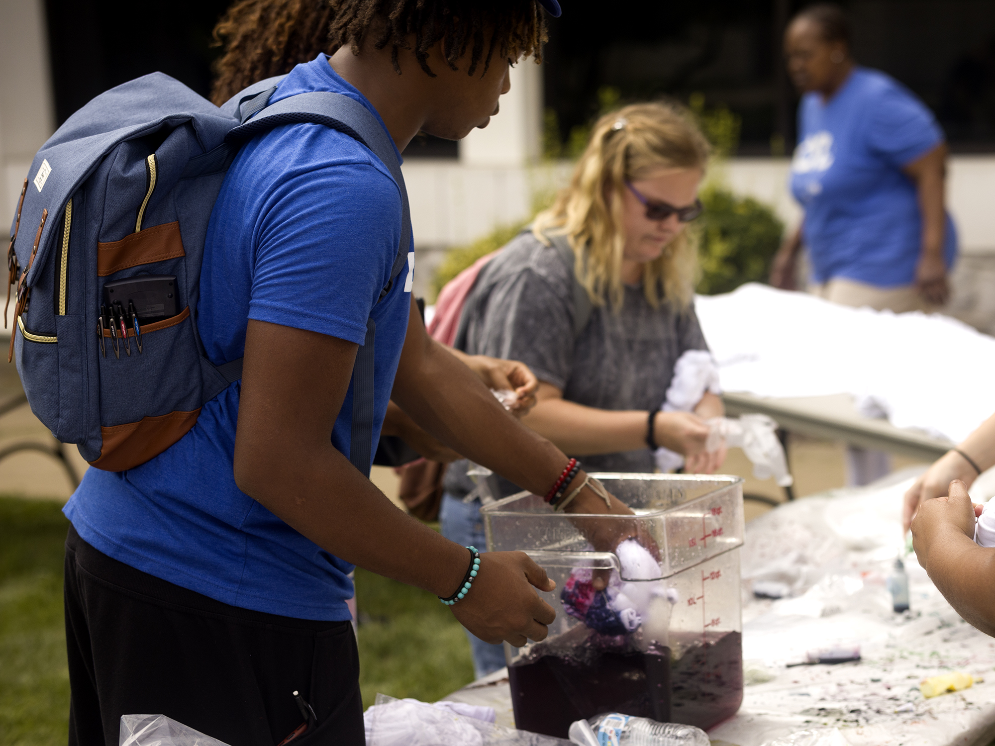 Tables were lined in the grass, with different tie-dye colors scattered throughout. Each student got to pick their colors and dye their own shirts.