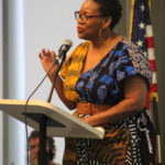Dr. Mumba Mumba- who, “had a pivotal role in helping to organize and make sure this event happened” according to Coordinator of Student Activities, Jared Hennings- gave some remarks and introduced Ms. Treasure Shields Redmond. Redmond gave performances from “Chop: a Book Collection of Kwansabas for Fannie Lou Hamer”, which infused freedom songs and historical facts with dramatic interpretation.