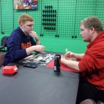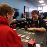 L&C Students, Dustin Asbury and Coty Bertschi (not pictured), face off during LAG’s weekly MAGIC tournament.